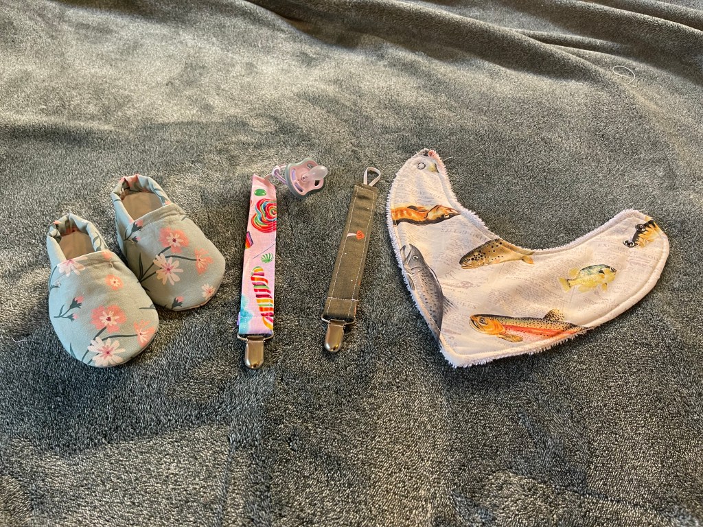 Custom dresses, adorable baby shoes, the perfect baby shower gift. Overalls, pants, shorts, bucket hats, and shirts are also in my repertoire, but not yet pictured. Send me a message from the contacts page for more information.